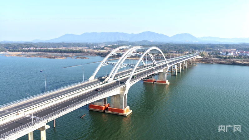 央广网吉安1月14日消息(记者郇康新 见习记者尹博)俯瞰江西省吉安市峡江县赣江大桥,车辆在桥上有序通行。近年来,江西省吉安市峡江县积极实施交通强县战略,不断完善城乡交通路网,形成集高速公路、国省主干线和城乡公路于一体的现代立体交通网络体系,为当地经济、文化、旅游等产业带来新的发展机遇。