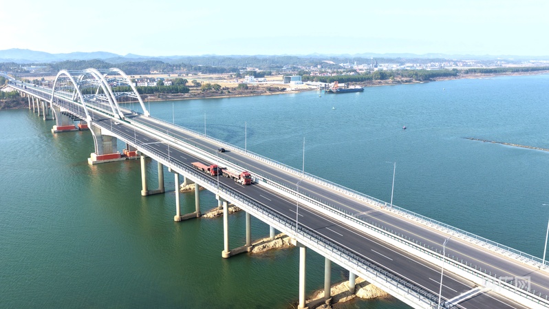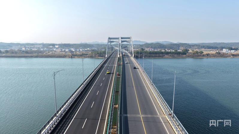 央广网吉安1月14日消息(记者郇康新 见习记者尹博)俯瞰江西省吉安市峡江县赣江大桥,车辆在桥上有序通行。近年来,江西省吉安市峡江县积极实施交通强县战略,不断完善城乡交通路网,形成集高速公路、国省主干线和城乡公路于一体的现代立体交通网络体系,为当地经济、文化、旅游等产业带来新的发展机遇。